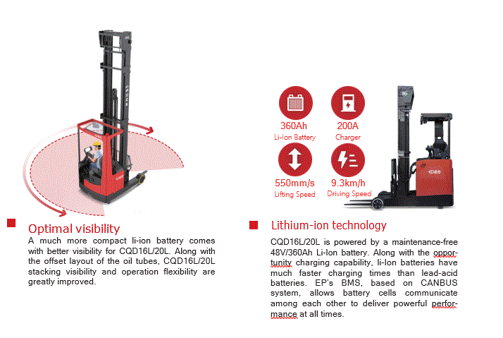 CQD20L MONTACARGAS ELÉCTRICO HOMBRE SENTADO CAPACIDAD 2 TON. a 9 MTS.