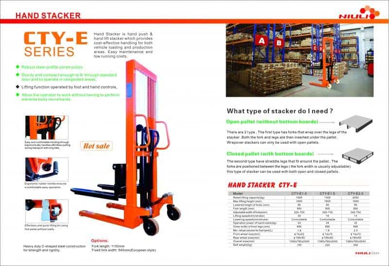 Estibador Manual Angosto 2 Toneladas 1.6 metros Modelo:CTY.E2.0T/1.6M PC