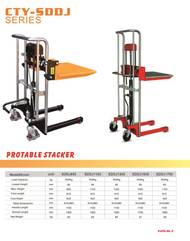 Estibador Portátil Manual 400kg 1.7metros Modelo:CTY-SDDJ1700
